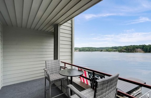 This newly remodeled premier condo sits on the shores of beautiful Lake Delton, with two levels of patios overlooking the serene and peaceful beauty of the lake and surrounding area. Ideally located near many activities that the Dells area has to offer, including many great restaurants, concert halls, shopping, and of course the indoor and outdoor water parks! Enjoy the close proximity to Noah's Ark - save on parking with just a short 4 minute walk. In town for one of the many great sporting events run by Just a Game? Your condo is only minutes away and gives you and your players a much better chance of a good night’s sleep to perform at a high level. This large 2 bed & 2 bath condo is perfect for a family getaway, friends reconnecting, or a couple’s trip. The two-story condo provides many advantages over a single level space, including creating quiet areas for children or guests looking to relax.