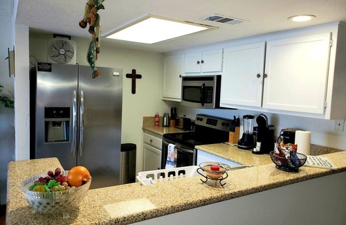 Welcome to Wickie's Wharf 2 bedroom 2 bath condo located on Lake Conroe where you can fish off the balcony (2 poles provided) or simply relax and take in the morning sunrise or evening view. Fully equipped kitchen with single serve Keurig and small coffee pot. Sleeps maximum 7 - King bed in Bedroom 1, queen and full size bed in Bedroom 2 upstairs. Couch in living or air mattress for additional guest sleeping option. Smart TV in living room, TV with DVD player in bed 2. Furnished and kitchen is fully equipped for cooking meals. Highchair, pack & play and baby gate provided. Seven Coves offers a marina, club house for special events, tennis courts, pool, park and The Wave on Lake Conroe restaurant with pool is closely located to condo. as well as the Southern Empress dinner cruise boat. The marina offers boat slips and can be paid for at The Landing sales office when you present your amenity pass included in rental.