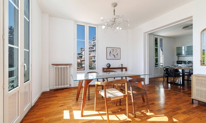 Welcome to our large and comfortable 1 bedroom of 76 m2 located in the neighborhood Bas Cimiez, quiet and a few minutes from the city center.SpaceWelcome to this great apartment,Located on the first floor without elevator, you will find all the comfort: space, equipped kitchen, TV, Wi-Fi...The accommodation is composed of a bedroom with a comfortable queen-size bed, storage space, a bathroom with bathtub, an independent kitchen, a dining room and living room with two sofas and television.There is no washing machine.The kitchen is fully equipped with refrigerator, gas hobs, oven, microwave, coffee machine, and kettle.Non smoking apartment.AccessThe accommodation is located at the bottom of the Cimiez district, near the city center, the nearest tram stop is "Palais des Expositions"The apartment is fully equipped. Sheets and towels are provided and you will have access to the complete accommodation.InteractionBnb Groom Services’ team is glad to greet you in Nice.Keys will be given to you in our office, Bnb Groom Services. We can also organize a check in on site depending on your arrival time and our availability. Don't hesitate to share you arrival information as soon as you have it.We will be there to advise you before and during your stay, available by phone or by email to answer any questions and make sure you spend a great stay at your home away from home.NeighborhoodThe apartment is located in a quiet residential area on the lower part of the district of Cimiez.Buses will quickly take you to the city center. Place Garibaldi is a 10-15 minute walk. Restaurants, bars and shops await you, all 2 steps from the Old Nice and the Port... Not to mention the beach and the Promenade des Anglais.TransitAccess to the accommodation from the airport is possible by public transport: take tram line n°2 towards Port Lympia and stop at the Garibaldi/Le Château stop. Then take the tram line 1 and get off at the Palais des expositions stop. The journey takes about 45 minutes and this stop is located 700m from the apartment.You can also ask us to arrange a private vehicle transfer from the airport to the apartment.The bus 100 to Menton via Monaco takes you to the Port of Nice, which is less than 1 km away.La Gare SNCF Nice Ville is located near by tram allowing you to visit Antibes, Cannes, Grasse, Monaco, Menton or even Italy easily.You can also access the apartment by car and park in the garage.IMPORTANT - RULES OF PROCEDURE :For security reasons, before arrival an online check-in should be completed via our Yaago application in which the person in charge of the booking should provide identity document.The accommodation should be returned in a suitable state of use, respecting the premises, the neighborhood, as well as basic rules of cleanliness and hygiene.Parties and noisy evening gatherings are not allowed.Smoking isn’t allowed inside.Non-compliance with these instructions may result in a deduction from the deposit or cancellation of the stay.Thanking you in advance for your kind collaboration.