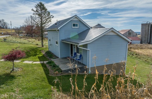 This is a quaint cottage in Clarksville Pennsylvania. It has all new appliances and beds. It also has a firepit. If you look out the front room window you will see the countryside and the sun going down. It's perfect for a short getaway.