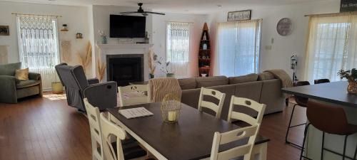 Featuring barbecue facilities, Wild and Free! Lakefront Oasis on Great Creek! provides accommodations in La Crosse. This property offers access to a patio, free private parking, and free Wifi. Outdoor seating is also available at the vacation home. Providing a balcony and lake views, the spacious vacation home includes 4 bedrooms, a living room, flat-screen TV, an equipped kitchen, and 3 bathrooms with a walk-in shower and a bath. Towels and bed linen are featured in the vacation home. For added privacy, the accommodation features a private entrance. Raleigh-Durham International Airport is 75 miles away.