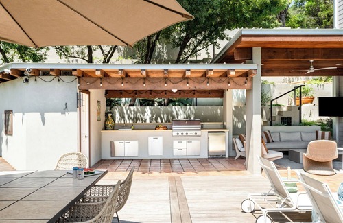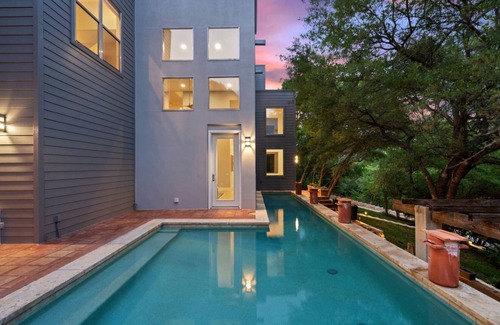 **The pool/spa can be heated to 104 degrees and is designed to serve as a cocktail pool or large spa with jets and it can comfortably accommodate large or small groups during your stay. The water temperature can be set to your preference before your arrival and it can be altered during your stay to serve people who wish to have a warm pool or a hot spa. During the warmer months in Austin, the pool/spa can also be cooled to whatever temperature helps you best relax and beat the heat.