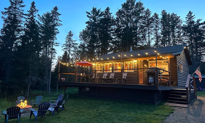 Wild Pines Cabin | Shared Waterfront w/Bistro Lighting & Fire Pit is located in Rangeley. Wild Pines Cabin | Shared Waterfront w/Bistro Lighting & Fire Pit provides accommodation, featuring Wellness Facilities, Fireplace/Heating, Internet, among other amenities. This House features Wellness Facilities, Fireplace/Heating, Internet, to make your stay a comfortable one.