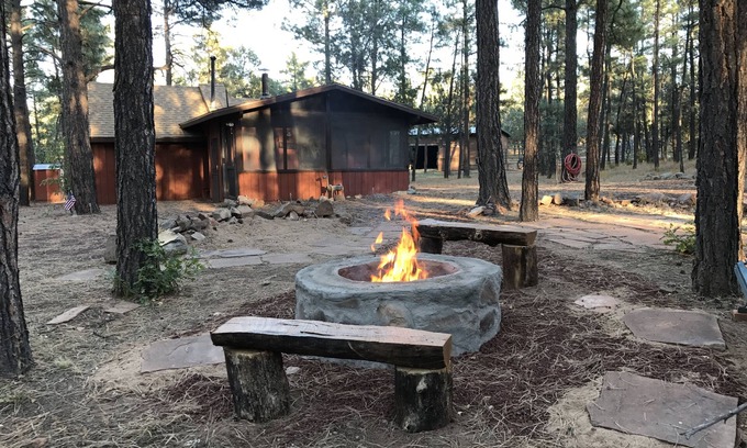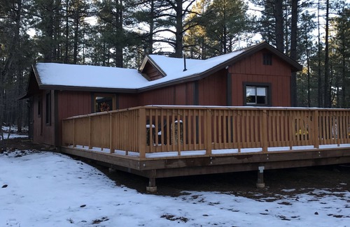 Our historical mountain cabin has been repurposed to make it the perfect getaway. Cozy and rustic, but with all the comforts of home. Cuddle up by the wood stove, lounge on the large deck, or go exploring on the miles of forest trails right out your back door. For the horse enthusiast, we offer accommodations for two horses with shade covers. Whether on foot, horseback, quads or mountain bikes, you are likely to come upon the elk, deer, or wild horse herds that frequent our area. Go kayaking, hiking, or fishing at nearby Fools Hollow Lake. Take in the things that make our small community so special like, chili cook offs, classic car shows, farmer's markets, antique shops, riding stables, rodeos, corn festivals and more! Getaway from the city and enjoy the cool breezes that flow through the pines in the beautiful White Mountains.