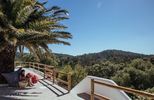 The retreat is defined by its spectacular uninterrupted 360° views of the Serra do Caldeirão mountains, a Zona De Intervenção Florestal protected for its natural beauty and famous Portuguese cortiça (cork) trees. There are no cars, no roads, no buildings, no neighbours for as far as the eye can see. Nothing but wilderness and nature. Nothing to hear but the birds and the wind. You are completely cut off from society, no interruptions or distractions and the whole place to yourself. The retreat is ideal for family holidays, reunions and birthday celebrations, corporate events and meetings or your very own wellness retreat as it comes equipped with a phenomenal infinity pool, Manor House with open plan kitchen and dining area, large studio for yoga, fitness or other group events as well as a treatment room for a massage or other therapies or meetings.