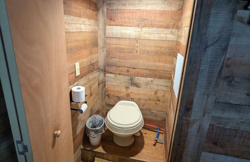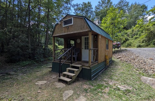 Escape to this wonderful cabin in picturesque Hominy Falls. the sound of the falls will relax you only 100 feet from the cabin, with a 11 foot drop and deep pool, jumping into the creek is a must do. With AC, heating, and WiFi, guests can relax in the cozy one room cabin with a queen bed. The bathroom features a refreshing shower and composting toilet. The kitchen includes a small fridge, dishes, a small oven and hot plates. Fire pits provide a safe place for a fire. We look forward to welcoming you to our place.