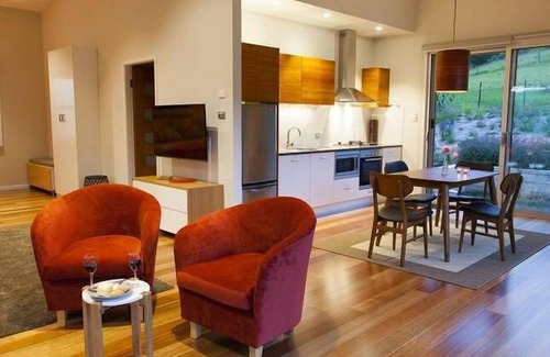 A hamper of breakfast provisions is available for purchase at the time of booking. Your breakfast goodies will be waiting in your fridge for you to prepare and enjoy whenever you like. Hamper-for-two contains: fruit in season, muesli, milk, organic farm-fresh eggs, bacon, tomatoes, mushrooms, butter, local artisan bread and jams.