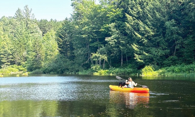 Canoeing: Glide over tranquil waterways while canoeing through the serene surroundings of the Adirondacks. This enjoyable activity offers couples a unique way to explore nature together during their stay at Wilderness Escape: Entire Adirondack Campground.