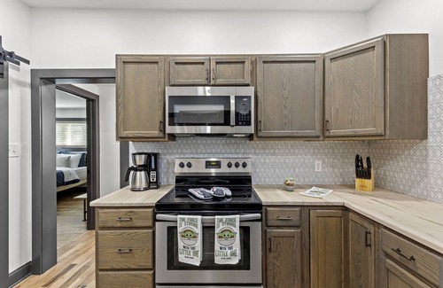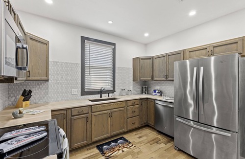This 2 bedroom bungalow 2 1/2 blocks from Main St. features first class accommodations throughout. Completely remodeled in 2022, it hosts lavish hardwood floors, real cedar shake siding, repurposed shelving from the floor joists, and more throughout.