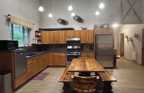 Discover the ultimate getaway at our cozy cabin, nestled on our private 2.5-acre lot in the heart of all the action. Enjoy the best of both worlds: easy access from the highway with the peaceful seclusion of a wooded property—no traffic noise, just the sounds of nature. Whether you’re looking to play, relax, or even work remotely, there’s plenty of space for everyone.