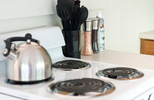 The cabins are stocked with all the essentials, including a kitchenette, bathroom and shower supplies, fresh linens, coffee, tea, sugar, creamer, a drip coffee maker, and portable fans.