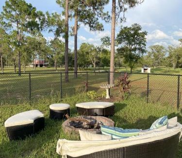 Wildflower Ranch features a public bath and air-conditioned accommodations in Bronson, 27 miles from Ben Hill Griffin Stadium. Private parking is available on site at this recently renovated property. On clear days, guests can head outside to enjoy the campground's outdoor fireplace, or simply kick back and relax. At this campground, some rooms come with a private entrance, flat-screen TV cable channels, and PS4. Some units also have a well-equipped kitchenette with a microwave, a toaster, and a fridge. At the campground, every unit is equipped with a seating area. For those times when you'd rather not eat out, you can cook on the barbecue. The campground has a picnic area where you can spend the day outdoors. University of Florida is 27 miles from the campground, while Regal Cinemas Royal Park Stadium 16 is 26 miles from the property. Gainesville Regional Airport is 36 miles away.