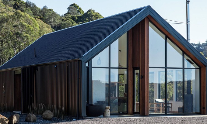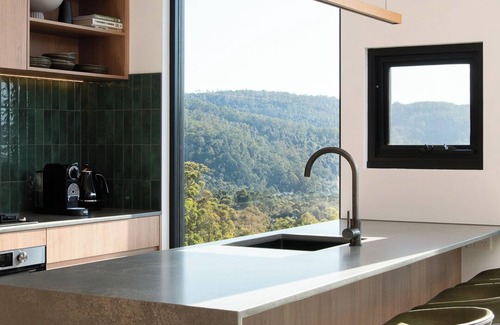The cabin features two bedrooms, an open plan kitchen, dining & living, which have floor to ceiling windows, that capture to full vista of the location.