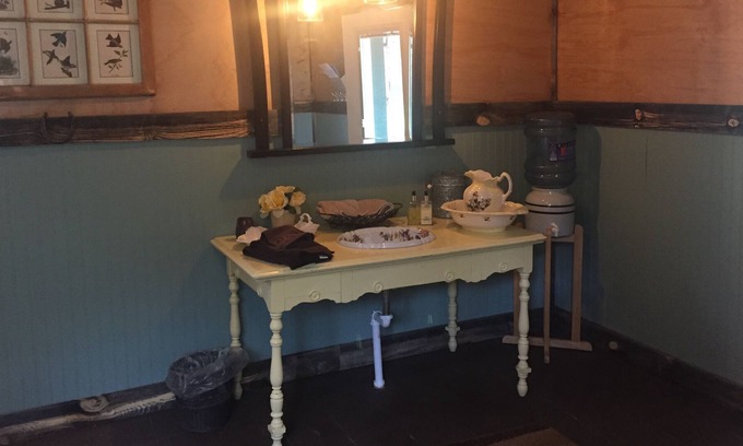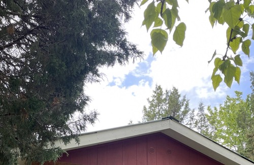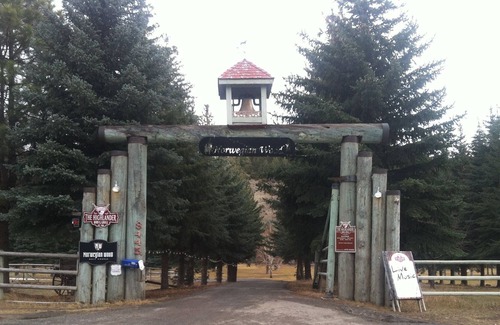 Take a break and unwind at this peaceful oasis nestled in the trees at Norwegian Wood Ranch. This classic frame cabin contains an exquisitely rustic-boho decor with a comfortable bed, sink, mini fridge and cozy front porch. You and four other guest units share a private "outdoor" bathroom with a potty and a shower (with instant hot water!). During your stay, be sure to get in a round of golf on our very own unique 9 hole par 3 course -- details available in the bar or on the mailbox next to the front door. And speaking of bar, be sure to join us for a drink or make reservations for dinner Thursday through Saturday at our fabulous fine-casual Highlander Bar and Grill. Enjoy a stroll around the ranch along Magpie Creek to see our Highlander cows, chickens, and the famous "Bacon" the pig.