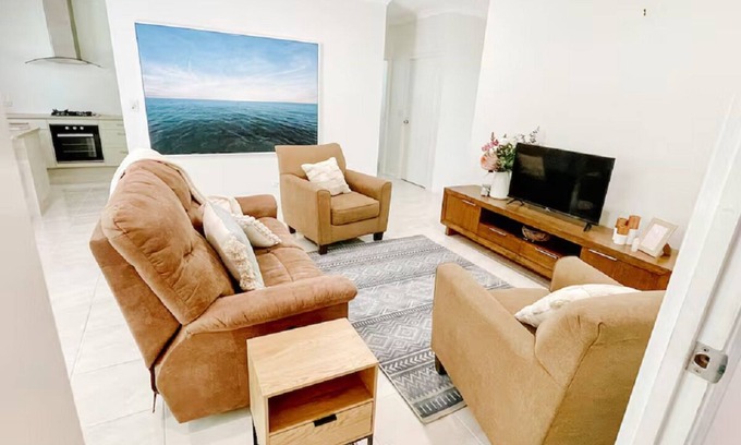 The two spacious bedrooms feature premium Tempur Queen mattresses perfect for a restful escape, large wardrobes and green outlooks. The bathroom includes a bathtub and plush towels, plus a separate toilet for added convenience. The apartment can accommodate 4 adults or 2 adults and 2 children or 4 people and baby in travel crib available.