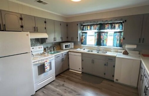 Come and relax in this safe, quiet, comfortable, clean, charming one level country home. This newly renovated home has three bedrooms ( two queen beds and two twin beds ) game room central heat and air, full kitchen and is located three miles