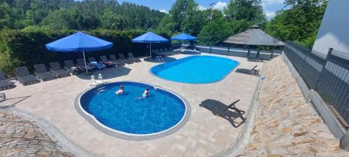 20 miles from Skansen Sanok in Polańczyk, WILLA NA WYŁĄCZNOŚĆ 12 os BIESZCZADY z Salą Imprezową, Jacuzzi, Sauną, Balią Zewnętrzną oraz 2 baseny z podgrzewaną wodą - Rezydencja Matiaszówka offers accommodations with access to a hot tub, wellness packages, and spa center. This property offers access to table tennis. There's an outdoor fireplace and guests can use free Wifi and free private parking. Providing a terrace and mountain views, the spacious villa includes 3 bedrooms, a living room, satellite flat-screen TV, an equipped kitchen, and 2 bathrooms with a hot tub and a bidet. The air-conditioned unit at the property features a bath and a dressing room. The accommodation is allergy-free. For guests with children, the villa provides kids pool and outdoor play equipment. Guests can swim in the pool with a view, go skiing or hiking, or relax in the garden. The Solina Dam is 7.3 miles from WILLA NA WYŁĄCZNOŚĆ 12 os BIESZCZADY z Salą Imprezową, Jacuzzi, Sauną, Balią Zewnętrzną oraz 2 baseny z podgrzewaną wodą - Rezydencja Matiaszówka, while Sanok Castle is 20 miles away. Rzeszów-Jasionka Airport is 71 miles from the property.
