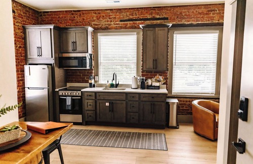 Located in the heart of downtown this modern and chic short-term rental offers a prime location with easy access to restuarants, shops, and attractions. This stylishly decorated suite features a comfortable bed, a fully equipped kitchen, and a cozy living area. Whether your sipping bourbon, checking out the historical sites, or just needing a simple getaway, this studio is the perfect location for luxury and convenience all in one!