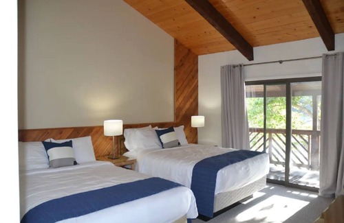 Come and enjoy a comfy room in a beautiful location at this rustic remodeled mountain “hotel”. It is a work-in-progress and currently undergoing updates and remodeling. These hotel style rooms can be rented when larger group events are not occupying the lodge and hotel. All rooms have lake views and lakeside access.