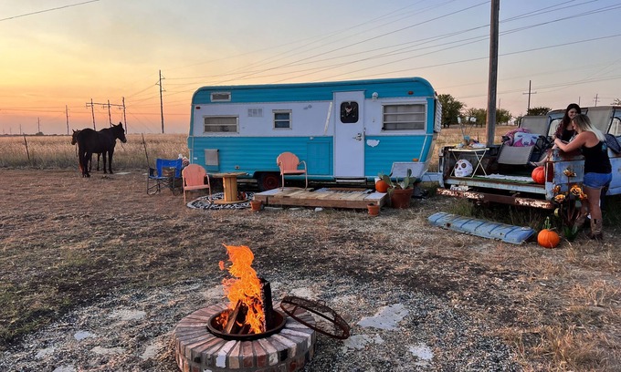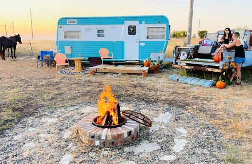 Get ready to relax around the campfire when you stay in this cozy vintage Holiday Rambler in beautiful Walnut Springs. This sweet rustic space offers a retreat for guests, with a comfortable queen bed and a futon for extra sleeping space. You'll find everything you need for a stay, including a microwave, dishes, a propane grill, WiFi, and AC. The bathroom features a hot shower, toilets, a sink and hair dryer. This vintage camper comes with an antique ford truck set up with reclining chairs in the bed, and a 68 chevy truck with pillows and blankets so you can stargaze under the Texas sky away from light pollution of the city! Whether you're seeking a peaceful getaway or an adventurous outdoor experience in Dinosaur Valley, 15 minutes away, our place has it all. We look forward to hosting you!