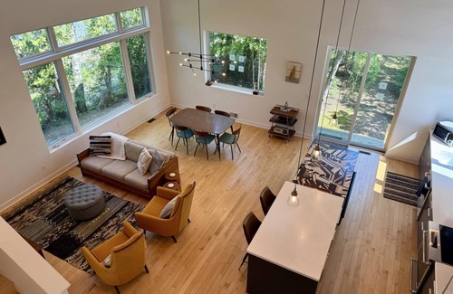 Book your own private island accessible by car, along with a sandy beach and bay, 3 kayaks and a canoe. This home is a serene oasis that sleeps up to 6 people.