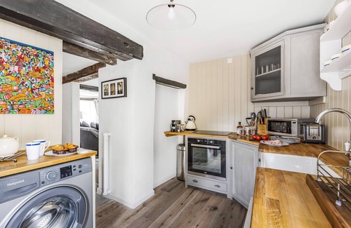 Willow Cottage has a comfortable sitting room with large inglenook fireplace with a bioethanol stove, a cosy window seat and television. The spacious dining room also has a desk area and leads through to the cottage kitchen, with electric oven and hob, fridge/freezer, microwave, Nespresso coffee machine and washing machine. Upstairs is a generous, dual aspect king-size master bedroom, a comfortable twin bedroom, a separate study and a family bathroom.