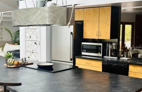 Sprawling over a generous 2500SF, this single-floor haven often surprises guests with its vastness—appearing even grander in person than photos suggest. Boasting 3 bedrooms and 3 bathrooms, the space is illuminated by striking ceiling windows that flood it with light. Clean lines and a Frank Lloyd Wright-esque ambiance resonate in every nook. For aficionados of unique furniture, every piece here tells a story. Discover designs from names like Design Within Reach, Anthropologie, and iconic mid-century masters like Kroehler, Eames, and Ramsur. Multiple seating areas beckon you to lounge, reflect, or get inspired. Gaze out of expansive windows, cook up a storm in a well-equipped kitchen, or sink into the warmth of radiant heat floors. And when night falls, rest upon luxurious Casper mattresses and pillows. Welcome to an architectural gem where every detail matters.