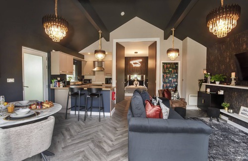 The kitchen area is well equipped for a guest to cook a basic meal, with all the electrical appliances you should need including a dishwasher, oven and hob, kettle, toaster and an air fryer. Following on from the kitchen is a breakfast bar with seating for 2 and a dining table also. Offering the option to dine in, or dine out at one of the delicious local restaurants.