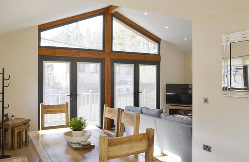 This cosy, welcoming lodge with its own hot tub is the perfect place to return to after a day’s adventure!. 3 steps to entrance.