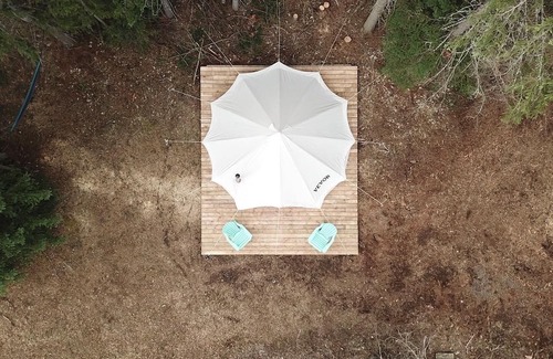 NO PUPS OR SHOES IN THE TENT: We work hard to provide a clean comfortable stay, please don’t allow any of your furry friends inside the tent and remove shoes prior to entering. There is a mat provided inside the tent where they can be stored.