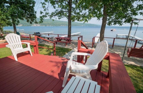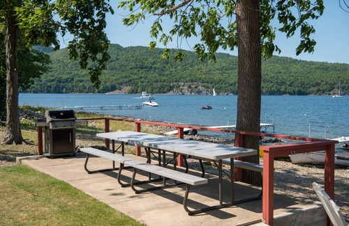 Enjoy this Lakefront camp on Willsboro Bay, Lake Champlain in upstate New York that offers a beach, mooring buoy (for rent) and 40 foot dock. Within walking distance is Indian Bay Marina for boat dockage for rent. On this beautiful body of water, rest, relax, and recreate with swimming, fishing and boating, depending on the season. On land there are lots of country road miles for biking, trails for hiking and areas for picnics. There are at least a dozen golf courses within an hour drive. Experience the rock climbing wall, The Crux, at Camp Poko-MacCready, less than fifteen minutes away. Or if you are looking for a less physical and less active time away, visit the town's well-stocked library to borrow a good book to read and just sit by the waters of Lake Champlain and the Adirondack Mountains to read and reflect. If you are a movie fan, two multi-plex theaters in Plattsburgh are only 30 minutes away. And if it is a vacation from cooking that you are looking for, enjoy our local restaurants in Willsboro, Essex, Elizabethtown, Keene, Lake Placid, Wilmington, and Peru. If music is your thing, spend your Tuesday evening at the local bowling alley's 'Open Mic' to join in or enjoy. We are located within minutes or a few hours of culture, history and fun at Ft. Ticonderoga, Whiteface Mountain, Lake Placid or Montreal. The view of the Adirondack Mountains to your west and Valcour Island to your North will offer some great scenery. Make this camp your 'come home to' retreat after a day of fishing, boating, leaf peeping, antique hunting, or a days shopping trip to Burlington, VT as a foot passenger on the Port Kent Ferry. This 3 bedroom camp has wireless internet, and heat and air conditioning are there for your temperature comfort. There is a washer and dryer on site for your use for no additional fee. There is an indoor shower and an outside shower for your Adirondack pleasure. Enjoy the Beauty of the Adirondacks in all seasons by the shores of Willsboro Bay on Lake Champlain. See our calendar.
