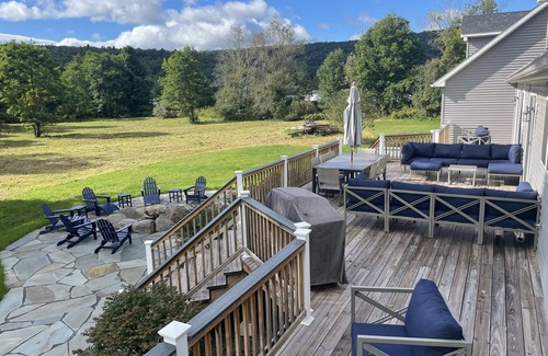 Escape to the Catskills and visit this Windham Mountain Home. Stay in this 2 floor, 5 bedroom, 4 bathroom house on a private 4-acre property! Offering amenities spacious deck with grill, sprawling stone patio with wood firepit, brand new Thermospa hot tub, huge 2 car garage, ski storage space, open concept kitchen and living room great for groups and especially, Windham Mountain views! Less than two miles from downtown Windham and 2 miles from Windham Mountain, this is the perfect place to relax and get away from it all! (.1 mile from Brandywine Restaurant)