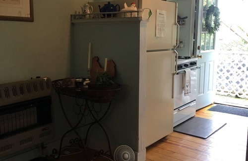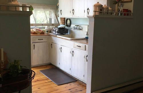 Tucked away over a turn of the century barn this two bedroom rental will take you back to a simpler time and place. One comfy queen and one single bed accommodates your sleeping needs. Awaken to the rooster's crow and prepare your morning breakfast in the fully equipped kitchen. The separate dining and living area are bright and roomy. The full bathroom has an original claw foot tub.