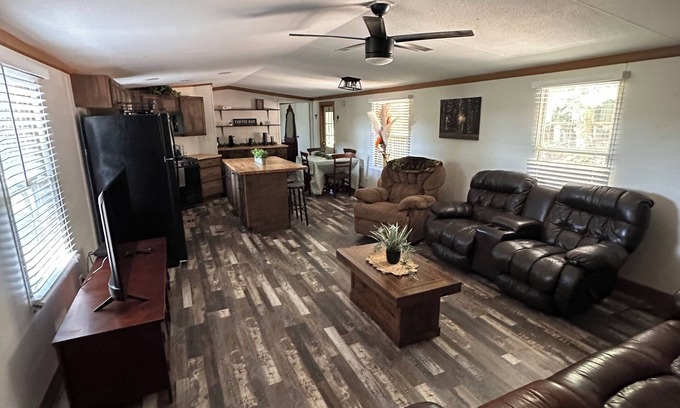 Escape to this delightful mobile home in picturesque Oliver Springs. With 3 bedrooms including a king bed, bunk bed, and twin beds, this cozy retreat is perfect for families or friends looking for a nice getaway. Enjoy the AC, hair dryer, and heating amenities provided. We think our place will help you experience everything Oliver Springs has to offer. trail access (NO TRIALER NEEDED).