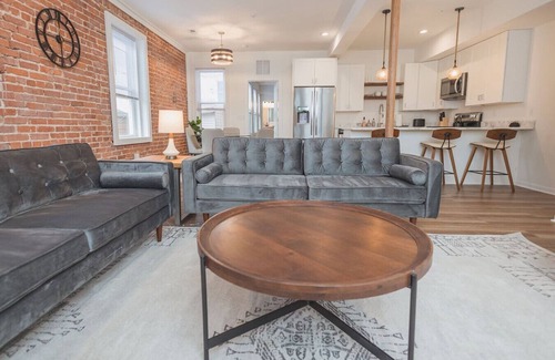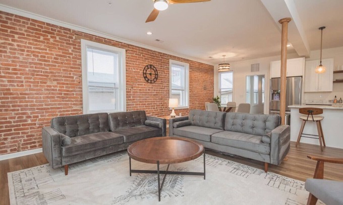 Indulge in the enchanting experience of the Windsor Castle Airbnb! This captivating one-bedroom, one-bathroom apartment adorned with exquisite brick accents is designed to sweep you off your feet from the moment you step inside.