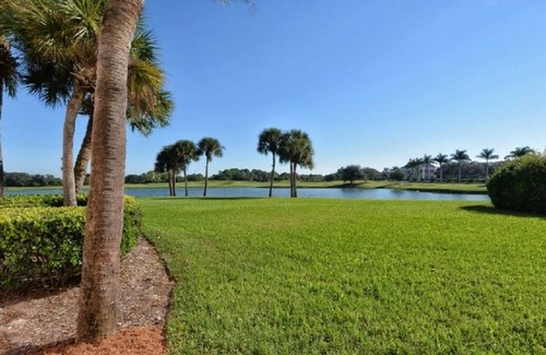 Completely furnished studio with a wonderful view of the adjoining lake and the golf course behind it.