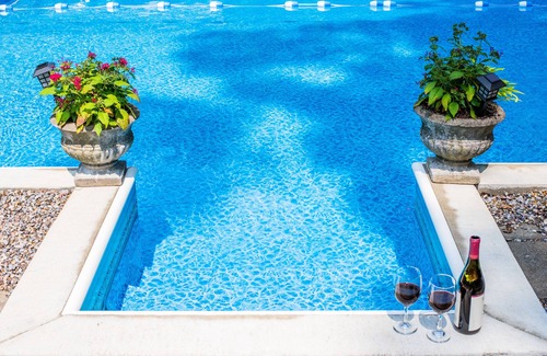 Your stay will be enhanced by an array of amenities and features designed for comfort and convenience. The estate offers three to four bedrooms, two and a half bathrooms, and a master suite complete with modern additions. The inviting outdoor space includes extensive grounds perfect for gatherings or quiet moments with a glass of local wine. Unwind by the inground pool, utilize the gas BBQ grill, and enjoy meals on the private terrace. The separate cottage serves as a versatile space, functioning as a changing area or kitchenette for event needs, allowing you to focus on your celebration while enjoying all essential comforts.