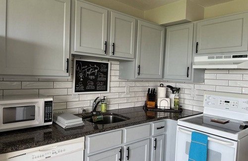 Welcome to your Wine Country Getaway with breathtaking views of Tri-cities and the countryside. Whatever the reason or season, you will feel at home in this fully equipped peaceful and private 1200 sq ft daylight basement suite, located in our home that overlooks Tri-Cities and the countryside. The open concept space has a large living room with a 65" smart TV and a fully equipped kitchen with breakfast bar and bay windows. All rooms have large windows that let in abundant light and allows guests to take in the view while inside. Outside, you can enjoy the patio or walk down to the lower terrace and take in the sunrise or sunset while enjoying your favorite beverage.