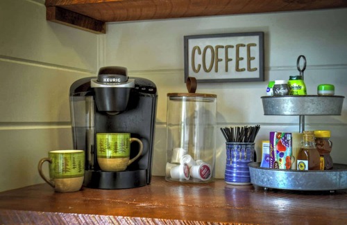 Inside, you’ll find two spacious king bedrooms and two full bathrooms, offering plenty of room for couples, friends, or families. The fully equipped kitchen, and dedicated coffee bar make it easy to cook meals or brew your favorite roast. Kick back in the cozy living room by the gas log fireplace or enjoy a soak in the private hot tub under the stars.