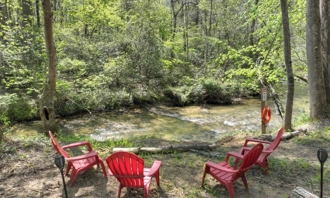 Creekside Retreat Near Ellijay Wineries | Hot Tub • Fenced Yard • Dog Friendly