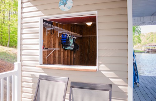 Dock: No boat lift usage, please use dock cleats to tie up your boat. Please enjoy the slide, SunChill float, and kayaks responsibly at your own risk. There are life jackets provided in the dock house free for guest usage. Be aware of littles near the water and we suggest making a rule that life jackets must be worn at all times when near the water.