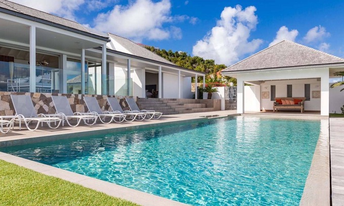 Welcome our stunning villa Wine Note represented by EXCEPTIONAL VILLAS, number one villa rental company on Trust Pilot. Villa Wine Note has its location on the hilltop above St Jean. The owners used oversize windows to allow for striking views overlooking Eden Rock and Saline Beach, making Villa Wine Note a sanctuary for connoisseurs of the sea.