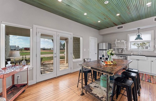 Welcome to the BEHRENDS FAMILY HOMESTEAD—your private, group-friendly escape in the heart of Texas wine country. Set on a peaceful property just off the 290 Wine Trail, this thoughtfully designed retreat features a spacious 4-bedroom historic farmhouse plus three additional guest units, including a 1-bedroom cottage and two beautifully appointed studio spaces—one of which is ADA-compliant.