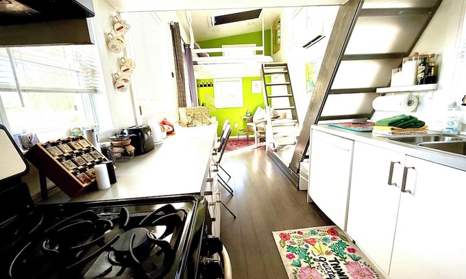 Come and enjoy this fully equipped retro tiny home with its fun flare while you take in all that Wallowa County has to offer.