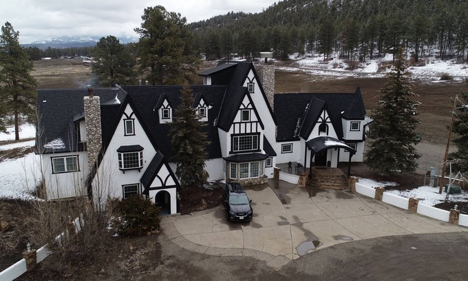 Welcome to Winslow on the Shire, a stunning English Tudor-style estate that serves as an idyllic wedding accommodation in Pagosa Springs, Colorado. This remarkable 11-bedroom, 12-bathroom luxury vacation rental is designed to provide an unforgettable experience for you and your guests while celebrating your special day. With ample space to comfortably host up to 25 people, Winslow offers a charming and romantic atmosphere that will make your wedding truly memorable.