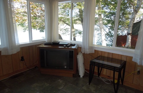 This year-round home is located right on the water with a shaded yard to the right, sunny deck and dock on the water. You can enjoy the water for summer activities, ice fishing and snowmobiling (an ITS trail is across the road) in the winter and enjoy the beauty year round. (For larger groups view our other Worthley Pond Property #101117 sleeps 6 .) The water level this home sports a sunroom with daylight windows overlooking the pond. This room contains a queen size bed, sofa, table, chairs, and TV. A second bedroom with two double beds is located behind the sunroom. The main level of the home contains a dining and living room combination, newly renovated kitchen, three bedrooms and two new bathrooms. The three bedrooms and living room over look the pond. A gas fired wood stove adds to your enjoyment in the living room for those cold winter evenings or cool summer nights. The fenced in yard is shaded with an outdoor fireplace and two tables with chairs. Stepping down from the yard you will find A 12' X 15' deck perfect for enjoying the all day sun and dock your boat. A canoe, paddle boat, and swimming float will add to your enjoyment. You will find the home well equipped with the necessities needed for your vacation including: Cable TV, WIFI, and cell phone access (added for 2015 for most phones) .
