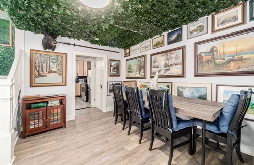 Rally your bannermen and courtly ladieswith four arcade systems, LED stage lighting, stacked dining room, outdoor lounge area, outdoor ping pong, propane grill, large smart 4K tvs in the living room and all bedrooms, and fully outfittedchef's kitchen.