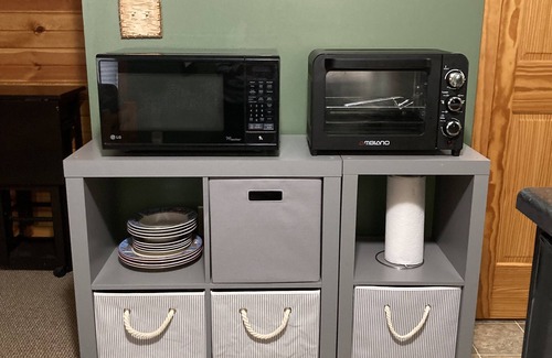 The unit is a 1 bedroom 1 bath apartment with private entrance in the walk-out lower level of our home. Kitchenette includes microwave, convection toaster oven sink and mini-fridge, spacious bath with shower and living room with full size futon bed.