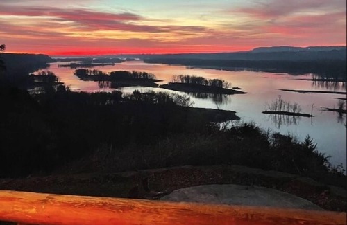 Escape to our 2 x luxurious Serenity log mansions, sleeping 31 people. Boasting in total a size of over 16,000 sqft, offering anamazing 3,000 square feet of porch space in each,all set on a 10-acre expanse with endless infinity views of the Mississippi River. This estate is a highlight of a larger 40-acre private ranch nestled on the bluffs of the Mississippi. Both mansions are located next to each other and arein excellent condition, featuring large, open floor plan spaces that is perfect for families, friends, and corporate retreats. Revel in breathtaking views, including awe-inspiring sunrises and majestic flights of eagles, hawks, and geese. The serenity lodges feature an outdoor hot tub, cozy fireplace in the spacious living area, alongside apool table, ping pong and foosball tables, dart board and a fully fitted bar. Movie room area with big screen projector and surround sound.In total, both properties boast 8 bedrooms, 8 bathrooms, including one with a large jetted tub for ultimate relaxation and 2 washrooms.