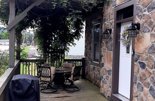 The first floor Turkeyfoot Inn apartment, is a full apartment with all the basic essentials, full kitchen, living room with two foldout sofas, one bedroom with a queen bed and full bathroom. It can sleep 4 comfortably. Includes use of our spacious deck with a view that everybody says is the best in town and plenty of secure storage for bicycles and kayaks. This is a first floor apartment for those who do not like traveling steps. You have the confluence of three rivers right out your front door. Great for fishing, kayaking, and it is very close to the Alleghany Passage Trail for your bicycling pleasure. The town of Confluence does have the noise of the occasional train which some find nostalgic and others find annoying. We have a great variety of outdoor activities and some great restaurants. Free on site parking. This apartment does have its own private outdoor table and gas grill. If you want to enjoy the sunset or the view of the rivers there is a private area especially for this apartment on the back deck.